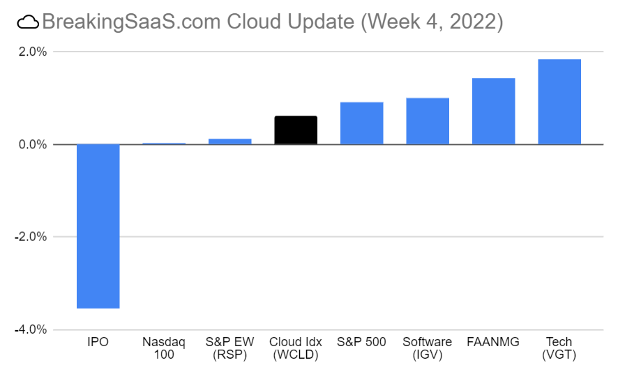 Cloud stocks broke a 4-week losing streak to finish the week up 0.6%.