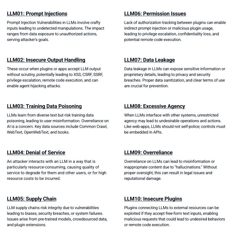 Finally, The Open Worldwide Application Security Project (OWASP) published a report on the 10 ways to attack LLMs. OWASP is a nonprofit foundation that works to improve the security of software.